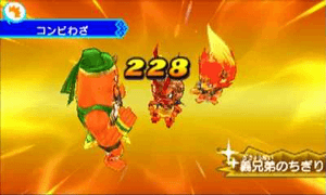 対象を仲間妖怪二体で挟み撃ちにして「こうげき」を仕掛けることで必中・種族相性無視の大ダメージを与えられるテクニック。さらにコンビ技でトドメを刺した敵は、ともだち(仲間)になる確率がアップするというメリットもある。